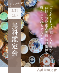 2月21日(土)無料鑑定会(愛知県名古屋市千種区姫池通 骨董買取 古美術風光舎)