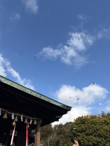 ですが、青空に舞いながら飛んでくる豆にあたふたする老若男女の様子が神事と言えど笑えてきます。ていうか、みんな笑ってます笑。それがとてもいい景色でした。
